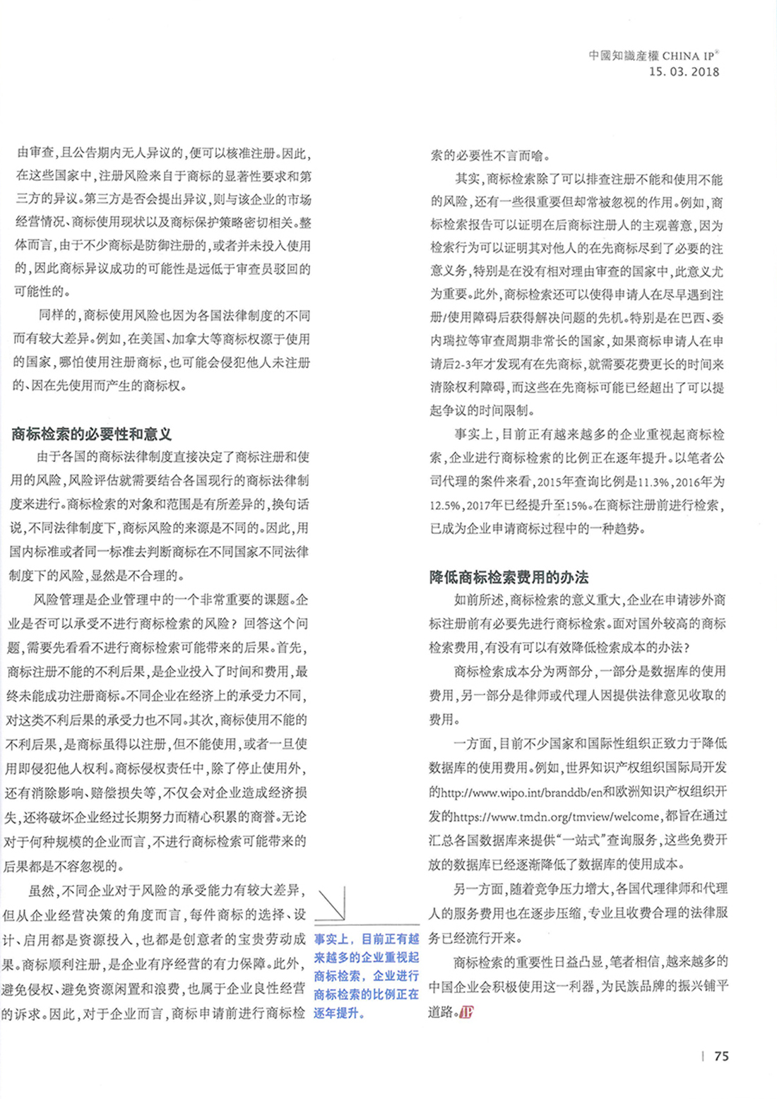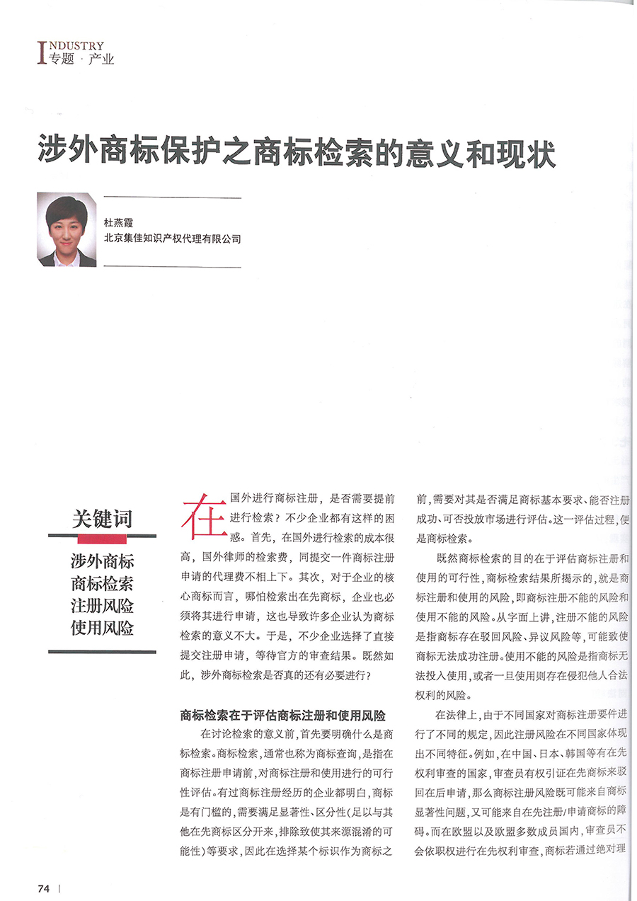 集佳文章《涉外商標(biāo)保護(hù)之商標(biāo)檢索的意義和現(xiàn)狀》在《中國(guó)知識(shí)產(chǎn)權(quán)》發(fā)表
